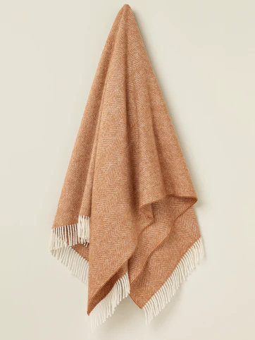 British Wool Herringbone Throw - Terracotta