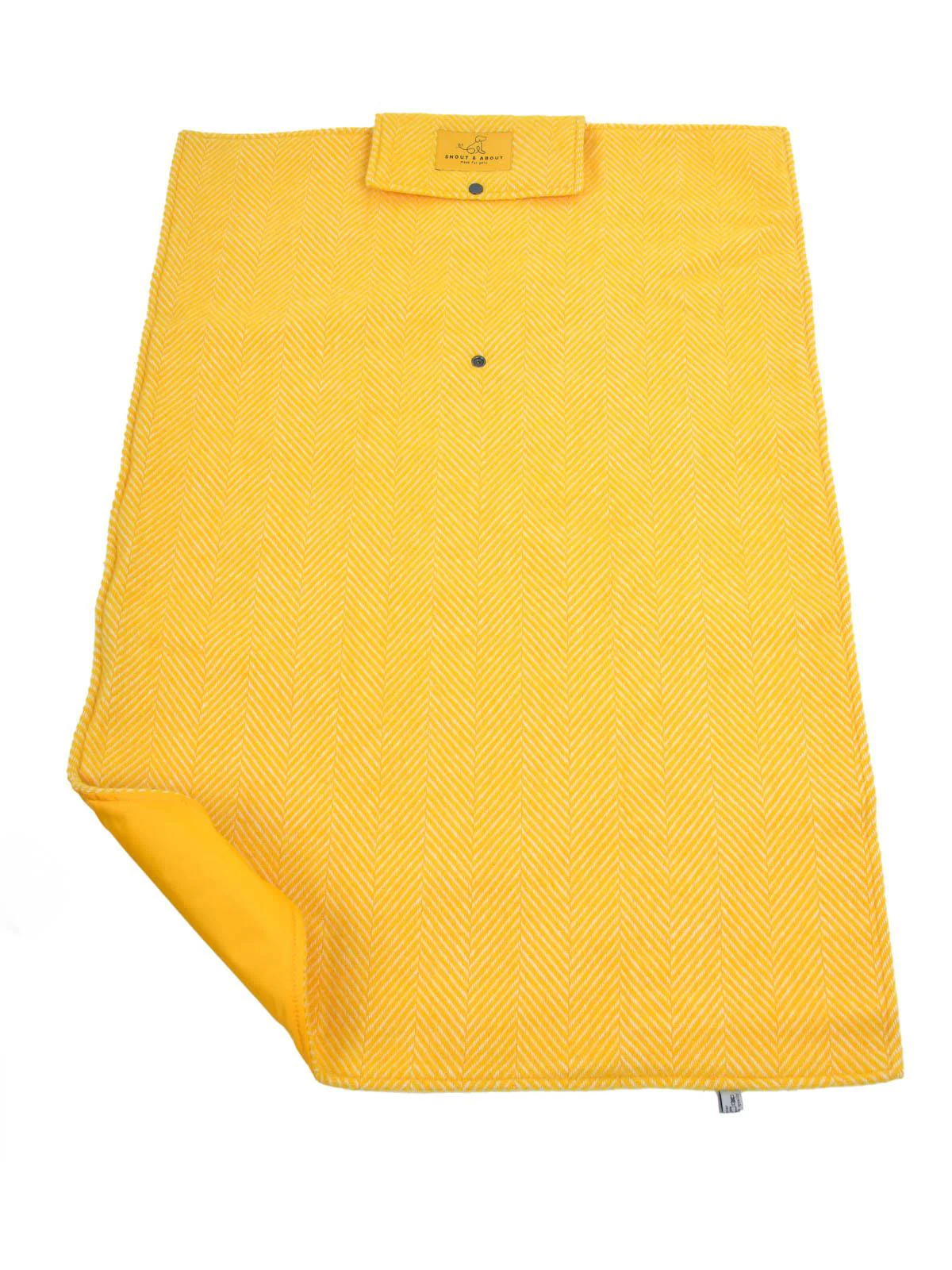 Measuring a generous 66cm x 98cm when unfolded, creating a portable space for your pup. Proudly crafted in Britain at a traditional woollen mill, it features 100% pure new wool in a classic herringbone pattern, providing a cosy spot for your pet to lounge. Wool is a fantastic material for dogs as it is naturally breathable and naturally stain and odour-resistant. The water-resistant backing ensures your pet is off the ground and any spills are contained. Plus, it folds up neatly and is equipped with a built-in carry strap and button closure, making it easy to transport wherever you and your four-legged friend venture. Made with muddy paws in mind, these settle mats are machine-washable on a cold wool setting. Did you know dogs can only see in yellows & blues? That's why we've picked colours that stand out to them!