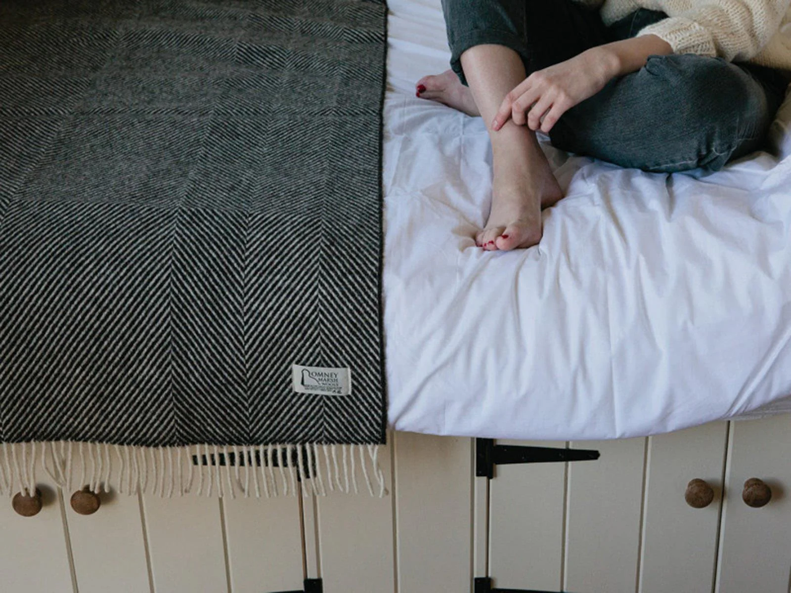 These gorgeous throws are made using 100% British Wool by Romney Marsh Wools in Kent. Their family farm has raised Romney Sheep for over 130 years, once a year their 1000 strong flock is sheared in the spring. It then takes about 6 months to turn raw fleece into these woven blankets. The whole process is done by expert weavers in the UK. They use the natural black colour of the sheep to create these timeless throws.