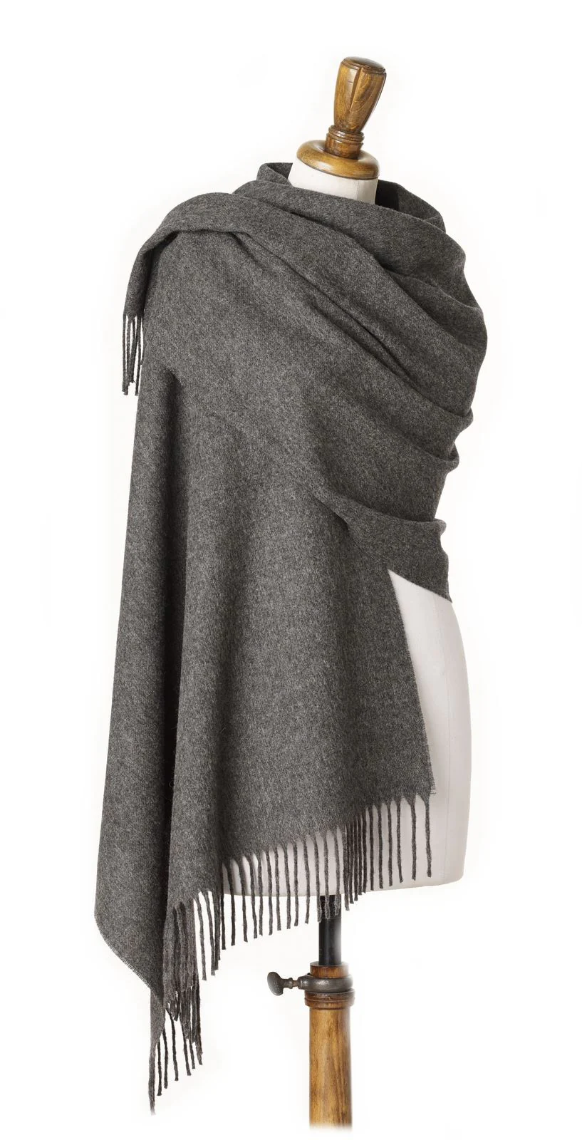 When the weather gets chilly feel the warmth and softness of wrapping up in a luxury lambswool scarf. British Made by Bronte by Moon, a traditional Yorkshire mill who have been producing quality woollen products at the Netherfield mill since 1837. Suitable for Ladies and Gents alike. Here is a classic Dark Grey for a timeless addition to your wardrobe.