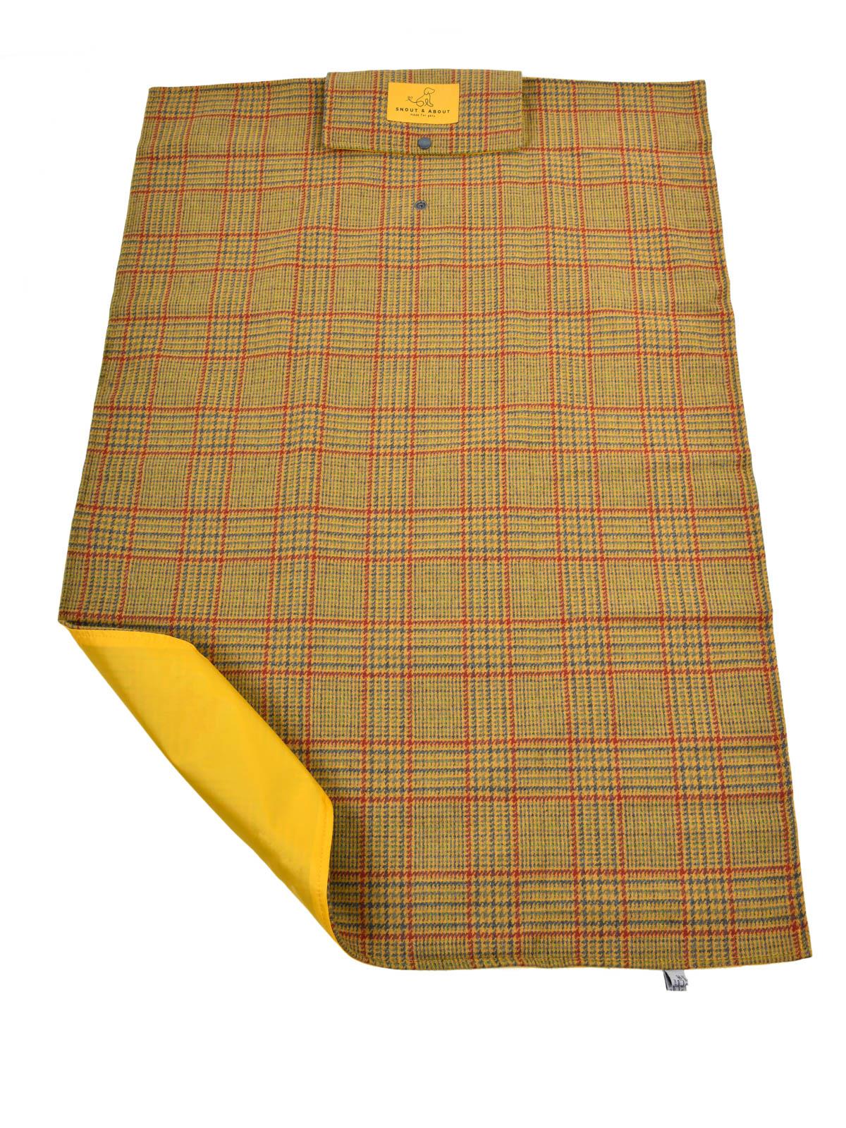 Measuring a generous 66cm x 98cm when unfolded, creating a portable space for your pup. Proudly crafted in Britain at a traditional woollen mill, it features 100% pure new wool tweed in a charming summer check pattern, providing a cosy spot for your pet to lounge. Wool is a fantastic material for dogs as it is naturally breathable and naturally stain and odour-resistant. The water-resistant backing ensures your pet is off the ground and any spills are contained. Plus, it folds up neatly and is equipped with a built-in carry strap and button closure, making it easy to transport wherever you and your four-legged friend venture. Made with muddy paws in mind, these settle mats are machine-washable on a cold wool setting. Did you know dogs can only see in yellows & blues? That's why we've picked colours that stand out to them!